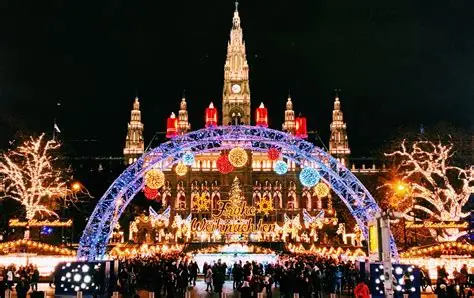 Frente al Ayuntamiento, el mercado vienés combina elegancia imperial con espíritu festivo. Entre puestos de diseño, dulces típicos y bebidas calientes, el entorno arquitectónico hace que cada visita parezca una postal.