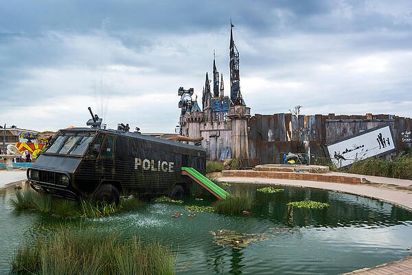 Con el tiempo, su trabajo fue más allá de los muros. Creó instalaciones, filmó documentales y desarrolló proyectos como Dismaland, un parque temático distópico que parodiaba el entretenimiento y el consumo.