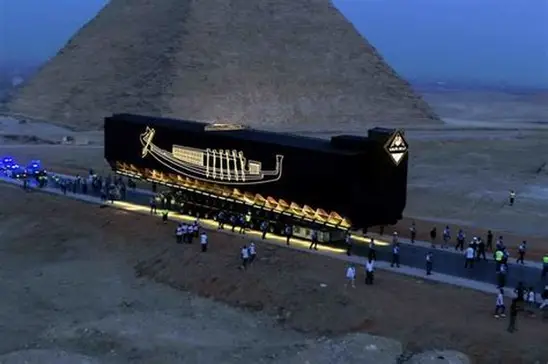 Pero en 2021, la barca volvió a “navegar”. Esta vez no por el Nilo, sino por tierra: un traslado nocturno de 8 kilómetros hasta su nueva casa, el Gran Museo Egipcio. La operación fue todo un espectáculo. La nave viajó dentro de una caja de acero de 60 toneladas, herméticamente sellada y equipada con sensores que controlaban temperatura, vibraciones y humedad. La escoltaron arqueólogos, ingenieros y cámaras de todo el mundo.