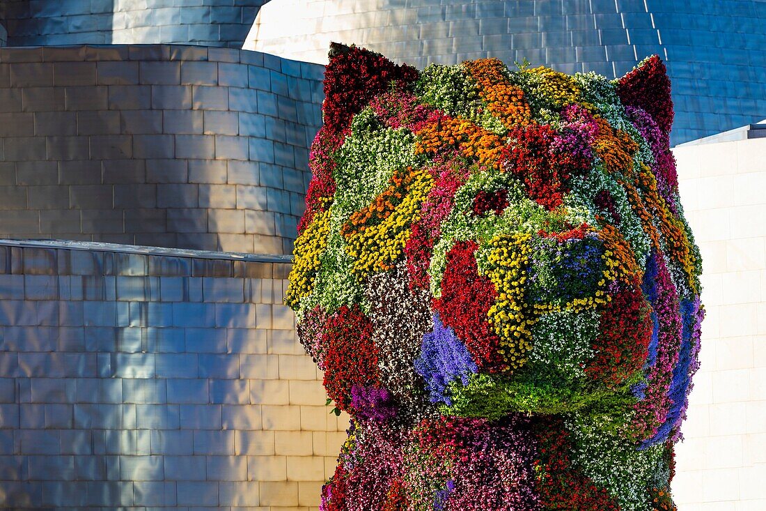 Instalado en la explanada del museo desde 1997, Puppy es más que una obra de arte: es una mascota urbana, un selfie obligado y un embajador de la ciudad. Porque en Bilbao, el arte también se pasea entre flores.