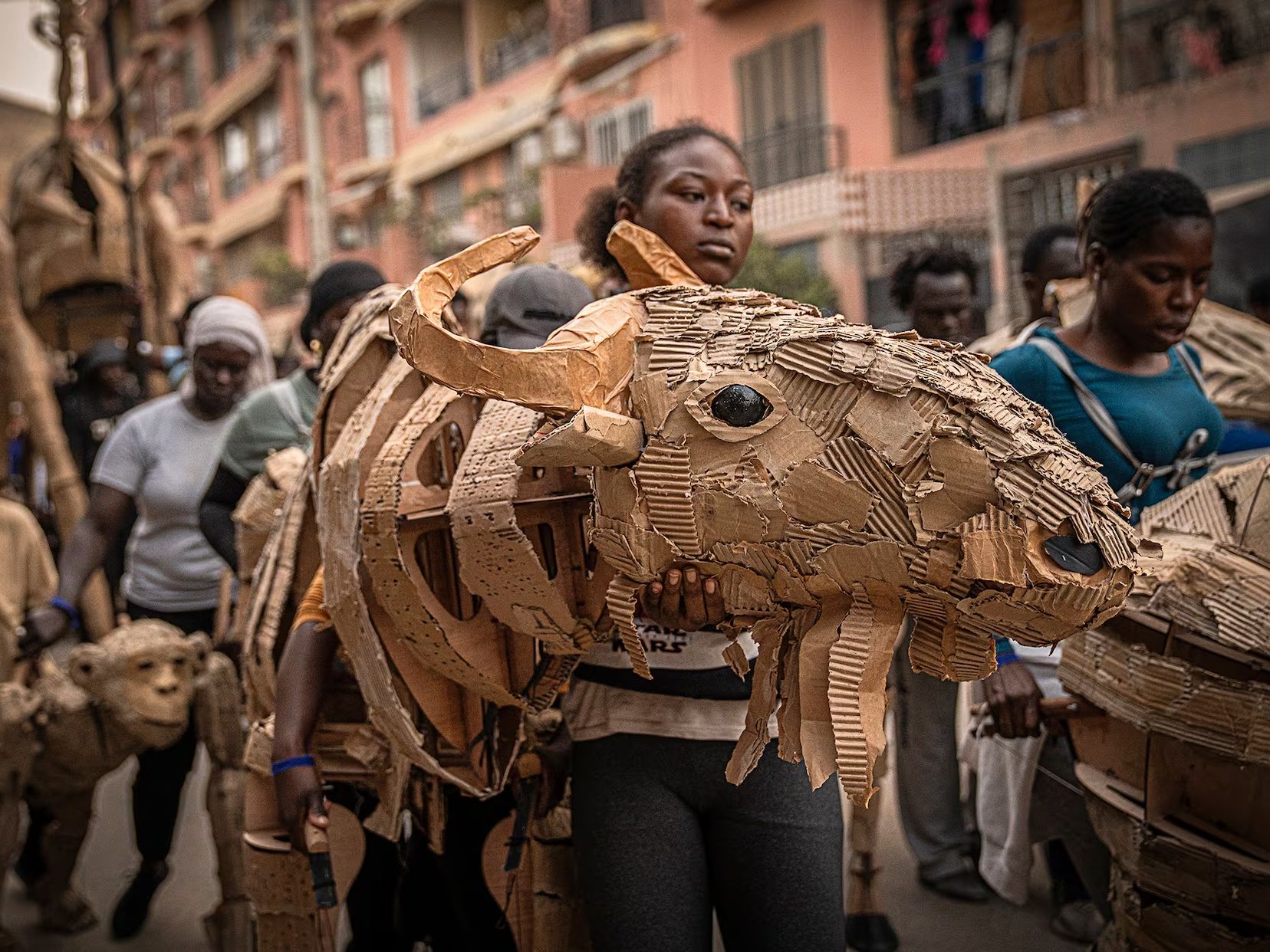 Durante meses, gigantes de cartón han recorrido más de 20.000 km desde el Congo hasta el Ártico, caminando, corriendo y hasta huyendo, como si fueran parte de un ritual viviente.