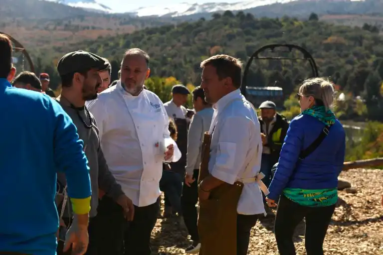 Este año, más de 30 chefs se sumaron al evento. El fuego fue protagonista, como siempre: corderos enteros girando en asadores, truchas recién pescadas cocidas al hierro y hongos patagónicos en mil formas.