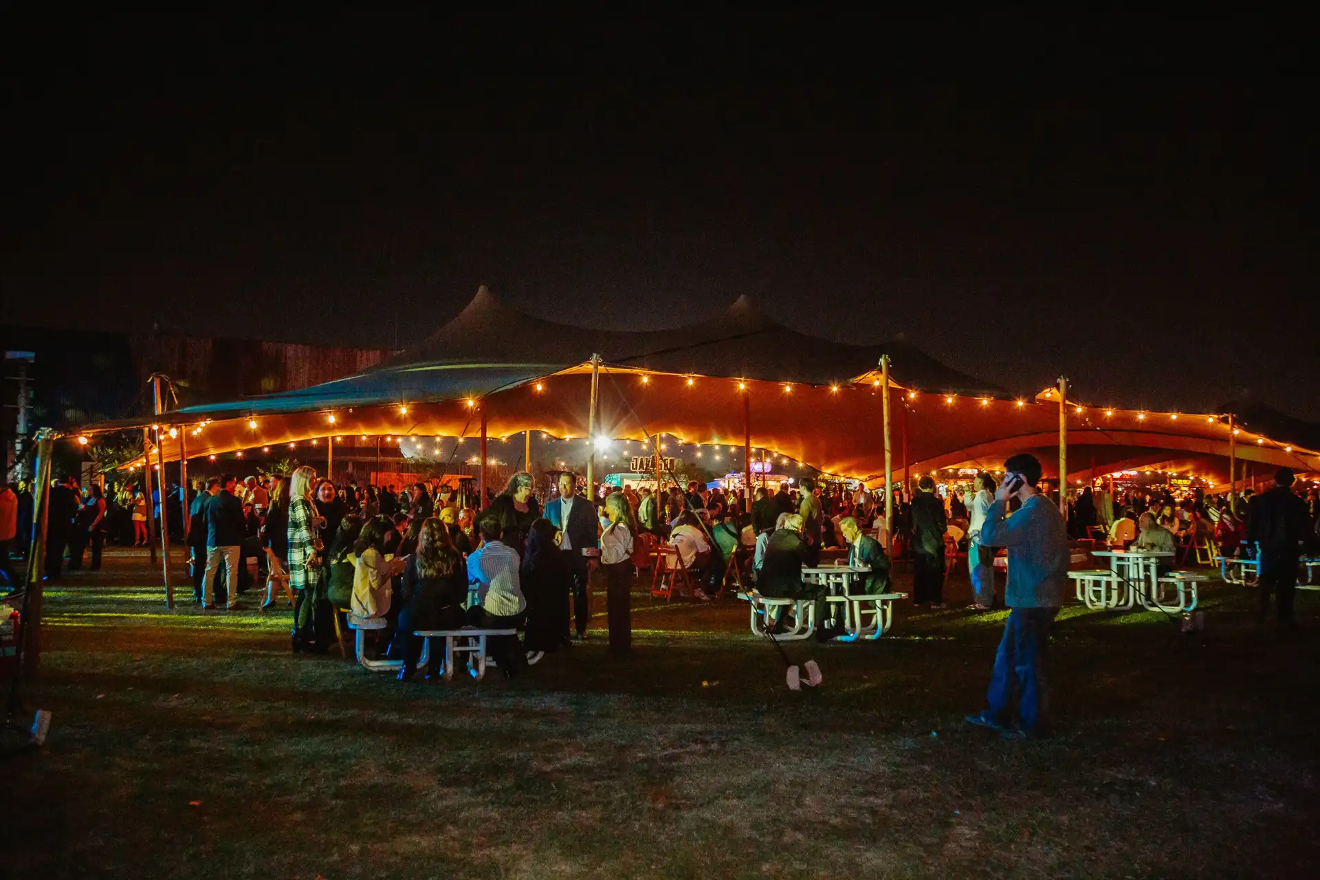 El predio, iluminado con intervenciones artísticas y rodeado de espacios verdes, se convirtió en una especie de parque cultural por una noche. Hubo food trucks, música en vivo y una atmósfera de fiesta que equilibró lo institucional con lo sensorial.